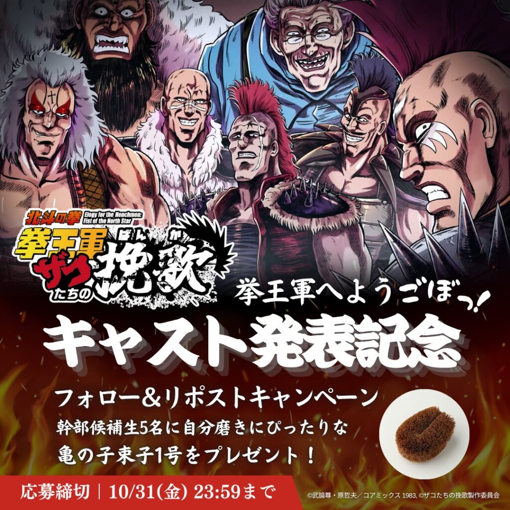 ショートアニメ「北斗の拳 拳王軍ザコたちの挽歌」のキャスト発表を記念し、公式Xで実施されているプレゼントキャンペーンに、亀の子束子1号が選ばれました。