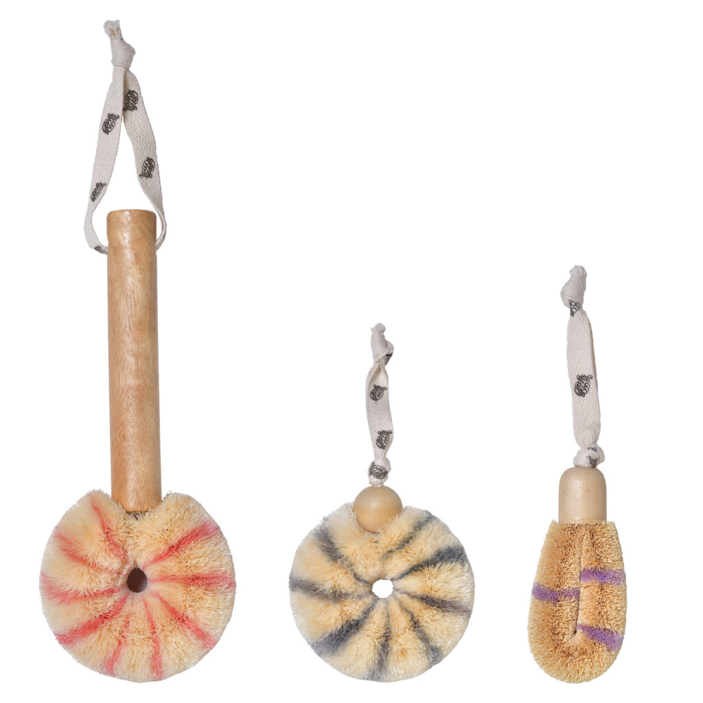 伝統の「亀の子たわし」をはじめ、棕櫚やサイザル麻など素材の異なるたわしや、銀や銅の抗菌効果を活用した人気の「亀の子スポンジ」など、明治40年の創業以来、品質にこだわり日本を磨き続ける、亀の子束子西尾商店の製品です