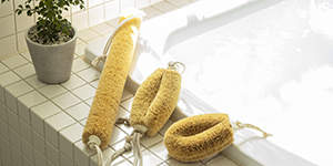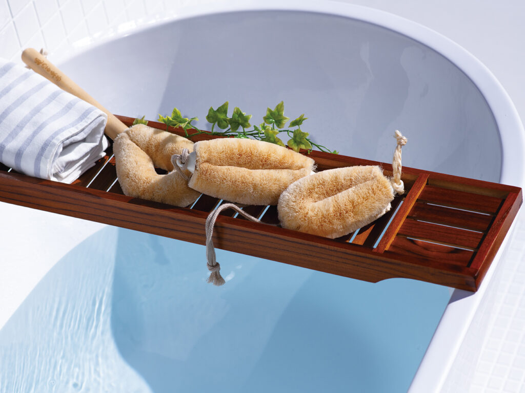 スポンジやタオルでは味わえない心地よい刺激のボディ用たわし。身体洗いにも使えます。背中や腰、足指や足の裏などをこすって洗うことでボディケア効果が期待できます。天然繊維を使い、繊維の種類によって4種類のかたさからお選びいただけます。